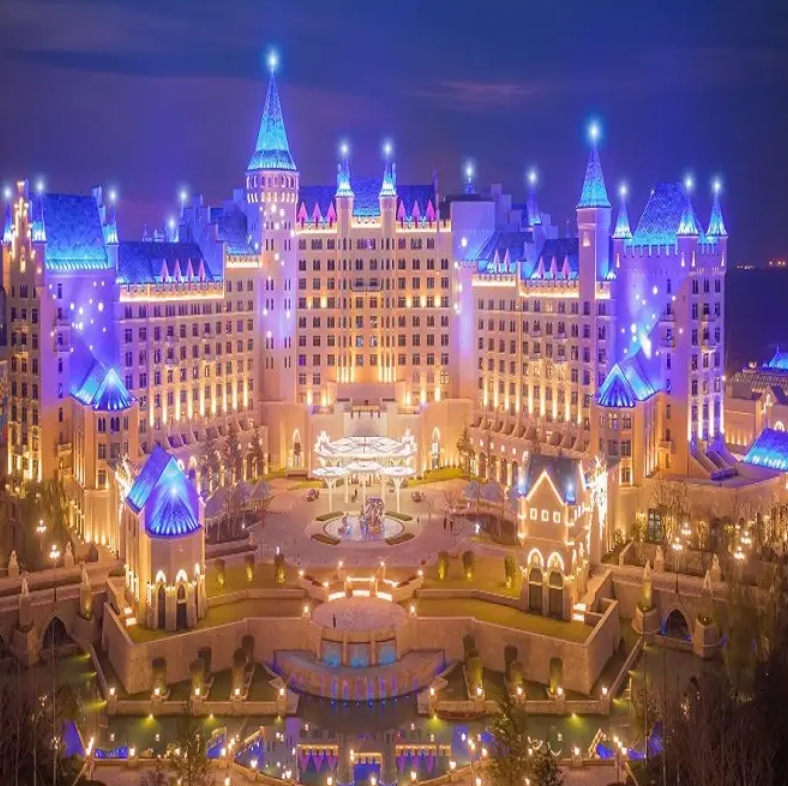 酒店由 世 界知名的建筑设计公司WATG设计,总建筑面积达161,800平方米,酒店拥 有 1,314间主题客房。风格鲜明的特色主题餐厅及中餐厅,还有难得一见的雪鹿 全日 自助餐厅,您可与憨厚可爱的驯鹿亲密接触。琳琅满目的休闲商业街 ,室外婚 礼仪式亭,特色烧烤露营乐园,室外滑道游乐园,9洞迷你高尔夫 ,健身中心,儿童驾校,室内及室外恒温泳池等一系列配套设施,为您 的精彩假期添上奇妙色彩!此外,酒店拥有大小宴会厅及多功能会议室共20间,是举行宴会活动的不二之选 ,也是举办完美婚礼的梦想之地