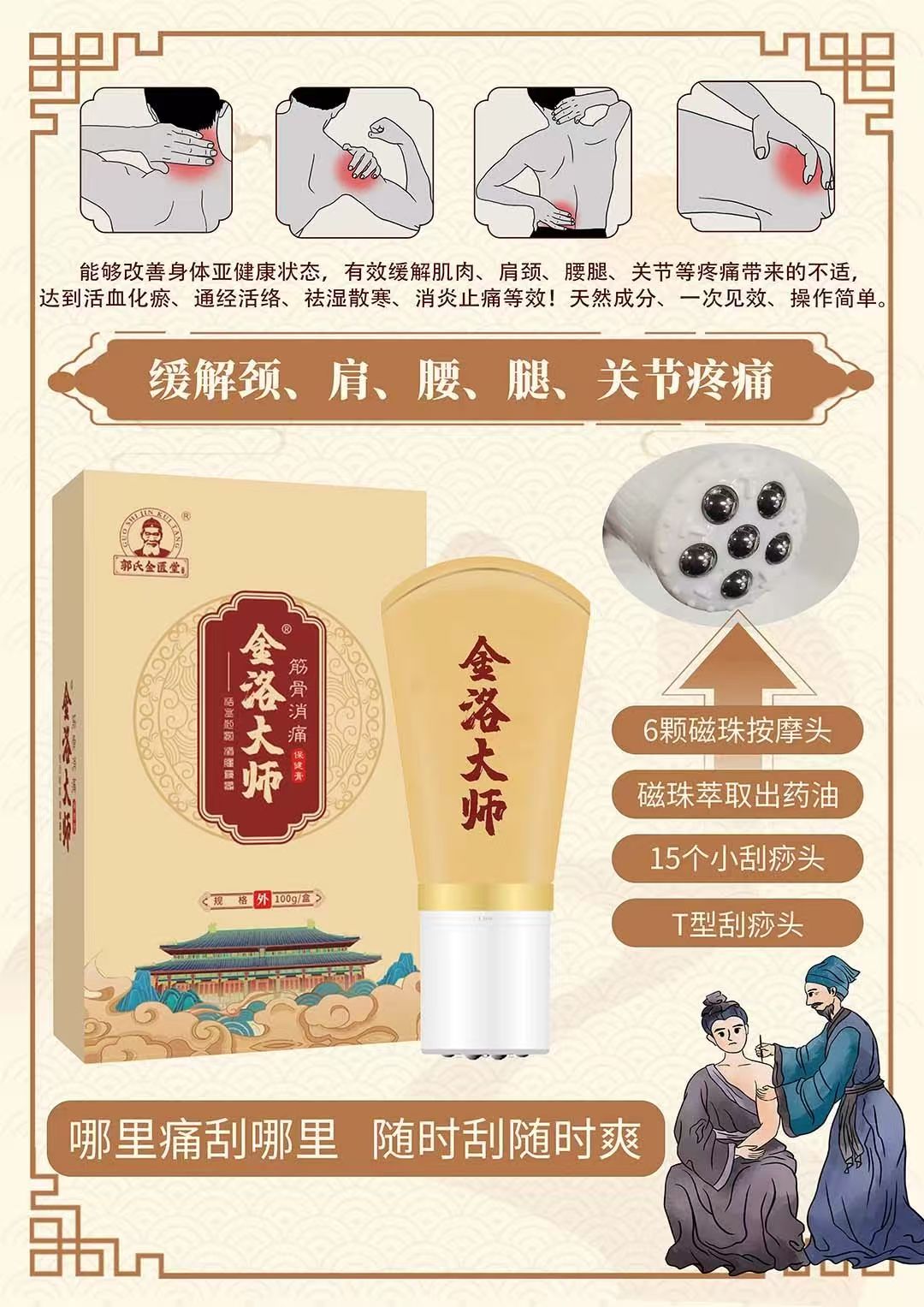 金洛大师 疏通经络 排湿驱寒 活血化瘀 筋骨消痛 刮痧按摩 风湿骨病人群 100Ml/瓶 3瓶
