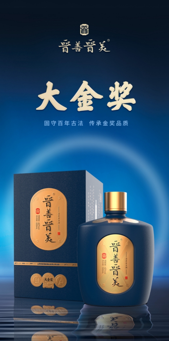 从1875年创立老派酿法开始,到1915年荣获巴拿马万国博览会甲等金质大奖章,晋善晋美历经百年岁月,坚守老派酿法不为成本低头,还原百年前的大金奖品质。瓶体设计采用晋善晋美百年前荣获大金奖的瓶型为原型优化而来,表达不忘初心和百年坚守的顶级品质,肩部的三枚徽章代表过去、现在和未来,也象征永不忘记的如金品质,色彩设计采用石金青,顶级产品当用顶级色彩,深邃、沉静、奢华,也代表如山如海的胸怀。大金奖631老酒配比酒质口感优佳!金奖的品质是商务接待礼品馈赠佳品!