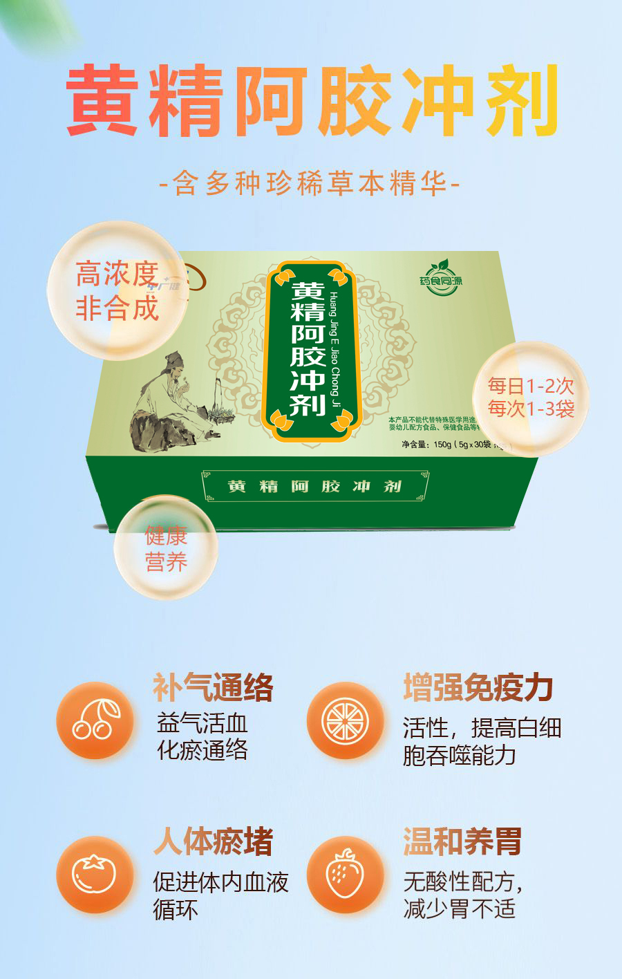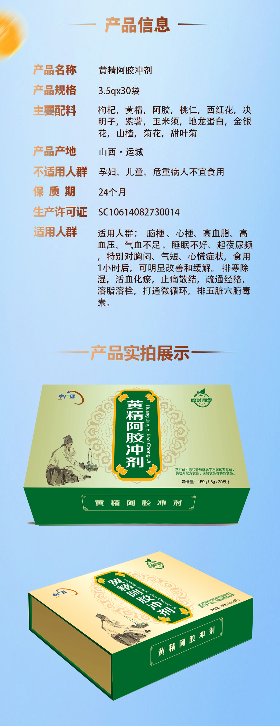 黄精阿胶冲剂预防心梗脑梗 调理心脑血管 每盒净含量:5g x 30袋