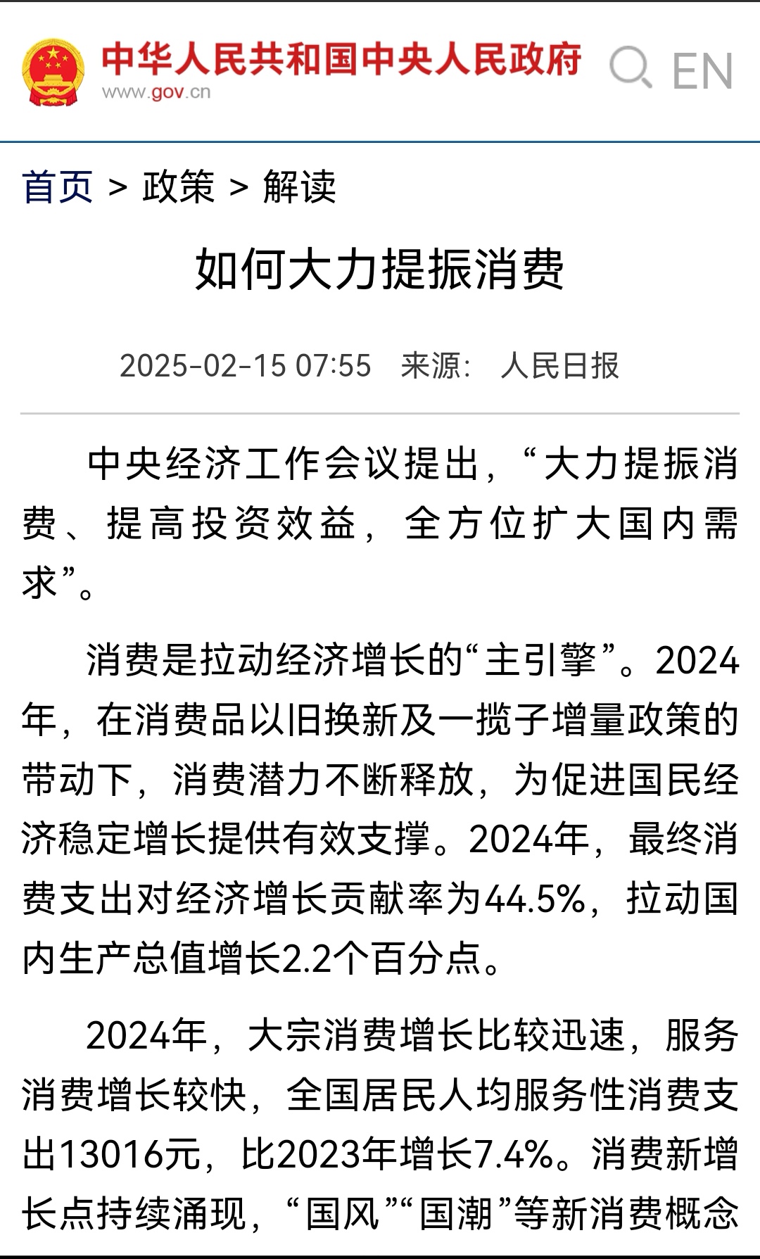 消费是拉动经济增长的“主引擎”。2024年,在消费品以旧换新及一揽子增量政策的带动下,消费潜力不断释放,为促进国民经济稳定增长提供有效支撑。2024年,最终消费支出对经济增长贡献率为44.5%,拉动国内生产总值增长2.2个百分点...